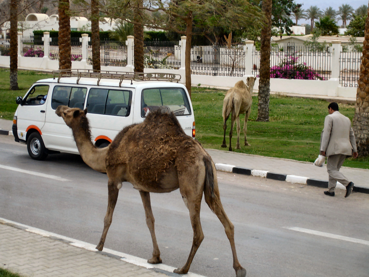 After crossing the border in Egypt we were greeted by several camels who joined our traffic.